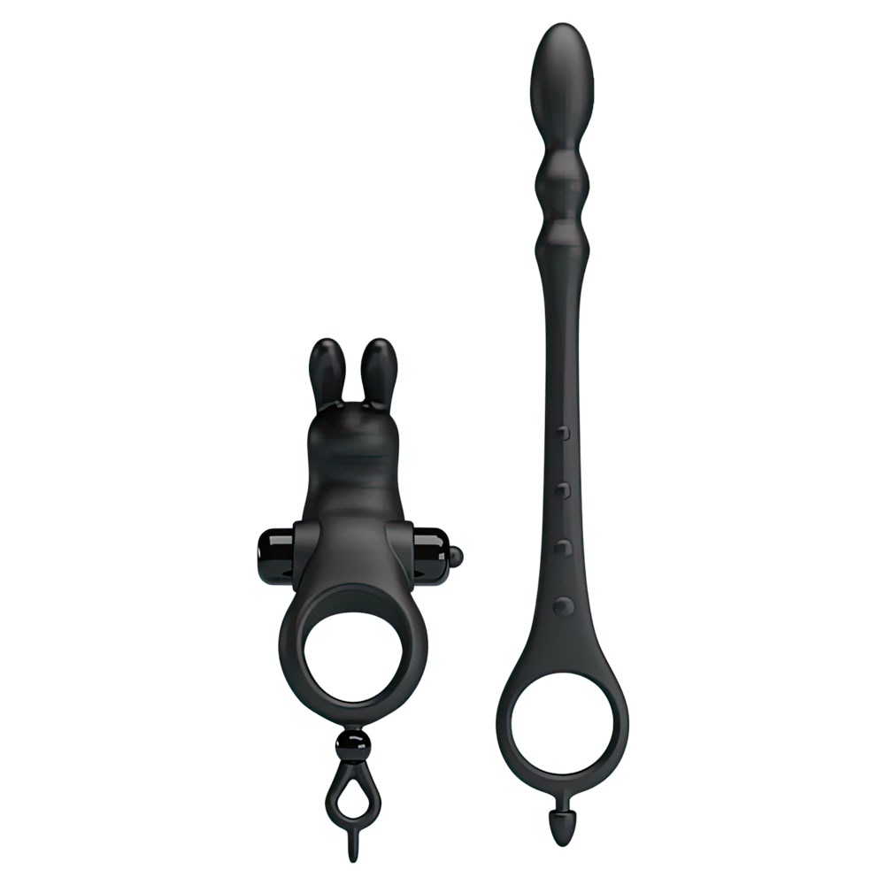 Eleve o prazer a um novo nível com o Pretty Love Penis Sleeve, um kit completo que combina anel peniano, plug anal para estimulação da próstata e cápsula vibratória com 12 modos de vibração.