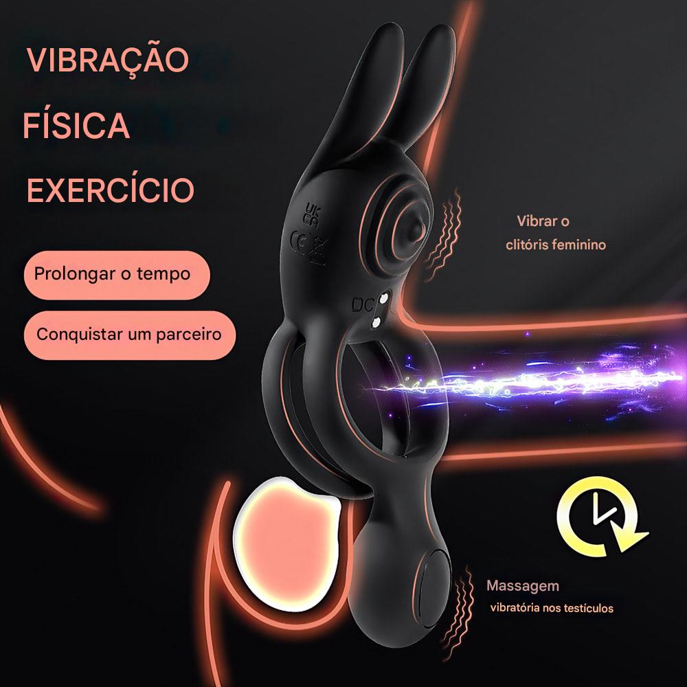 Na parte externa, o coelhinho estimulador oferece vibrações intensas diretamente no clitóris, aumentando o prazer da parceira durante a penetração. São 9 modos de vibração que permitem variar entre diferentes ritmos e intensidades para elevar a experiência a um novo nível.