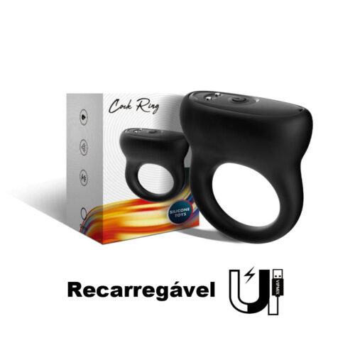 Fácil de usar: basta deslizar até a base do pênis e ligar a vibração. Produto recarregável, acompanha cabo USB.