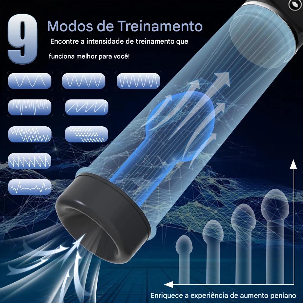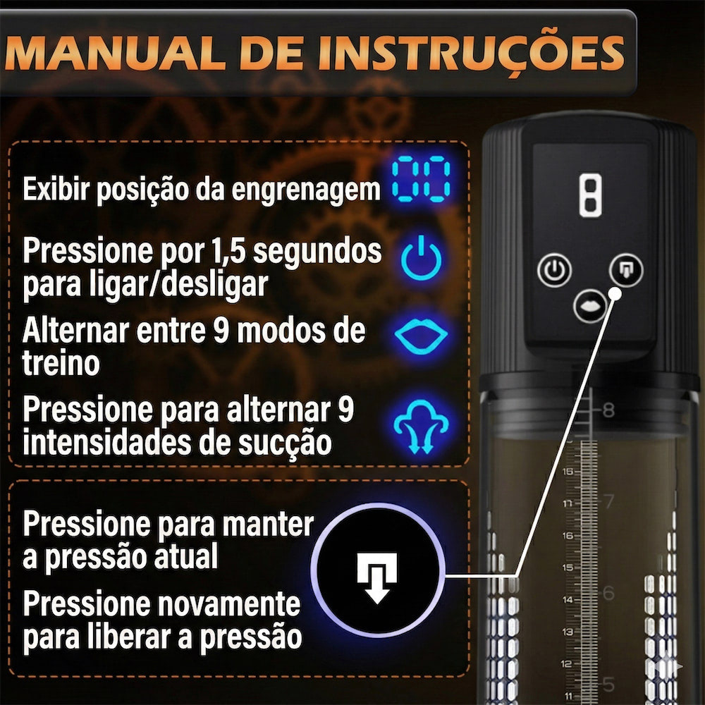Utilize por períodos de 10 a 15 minutos. Dica: O uso de um anel peniano após a sessão pode ajudar a manter o volume alcançado por mais tempo.