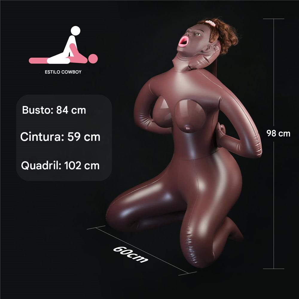 A Cowgirl Style Love Doll é uma boneca inflável realista desenvolvida para proporcionar máximo prazer, com design anatômico e posicionamento em estilo vaqueira, permitindo experiências ainda mais intensas. Produzida com materiais resistentes, suporta até 113 kg, garantindo estabilidade e segurança durante o uso.