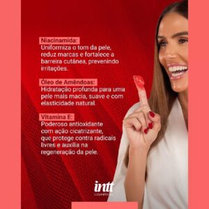 O Esfoliante Íntimo INTT + Deborah Secco foi desenvolvido especialmente para a esfoliação suave da região íntima externa, promovendo uma renovação celular eficaz sem agredir a pele. Com microesferas delicadas que não machucam, ele ajuda a prevenir foliculite e pelos encravados, deixando a pele mais macia e saudável. Tudo isso com um aroma altamente sedutor que torna o momento de autocuidado ainda mais prazeroso.