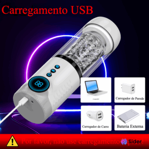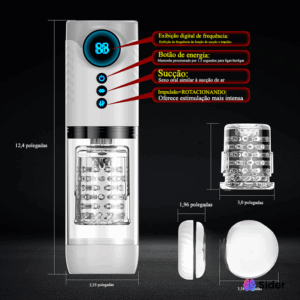 Este dispositivo robusto possui aproximadamente 26,5 cm de comprimento e 9,9 cm de diâmetro, oferecendo uma estrutura envolvente e potente. Ele é totalmente recarregável via USB, permitindo que você tenha performance máxima em todas as sessões. Importante: Para preservar a tecnologia interna, utilize apenas carregadores convencionais, evitando modelos do tipo “Turbo”.