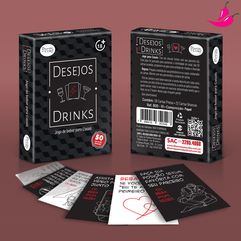 Composto por 50 cartas ousadas, o Desejos Drinks promete garantir momentos inesquecíveis, bastando apenas seguir os passos abaixo: