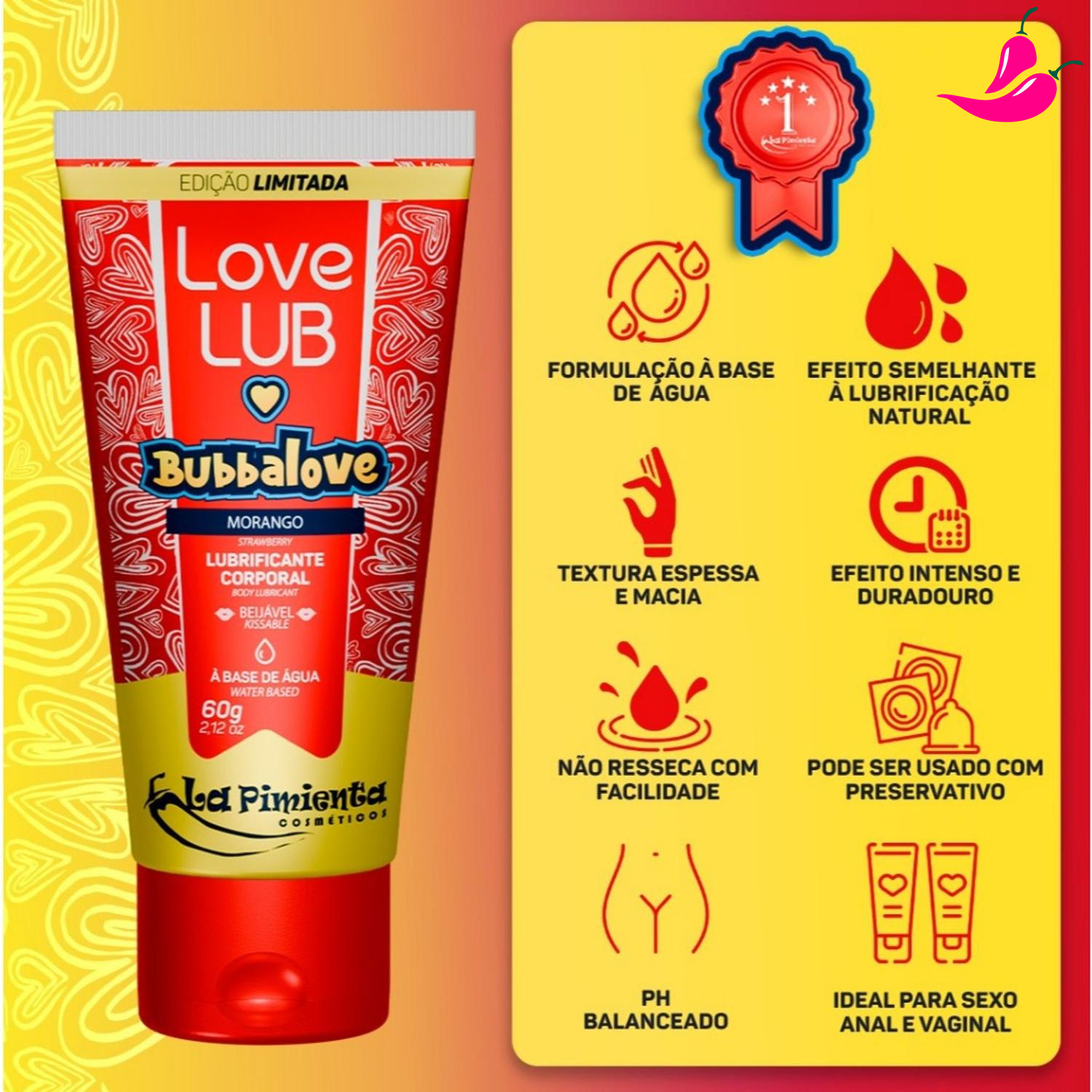 1 Lubrificante Corporal Beijável Love Lub Bubbalove Sabor Tutti Frutti – 60g