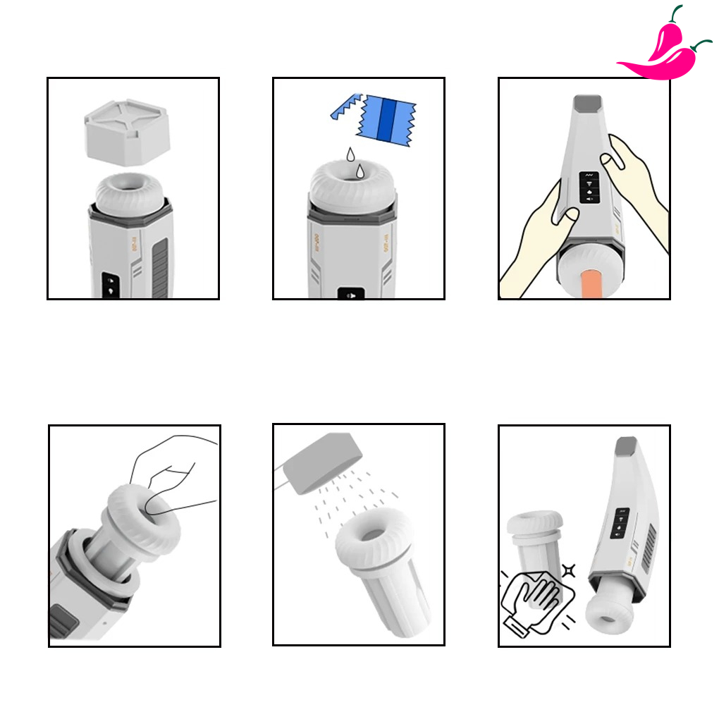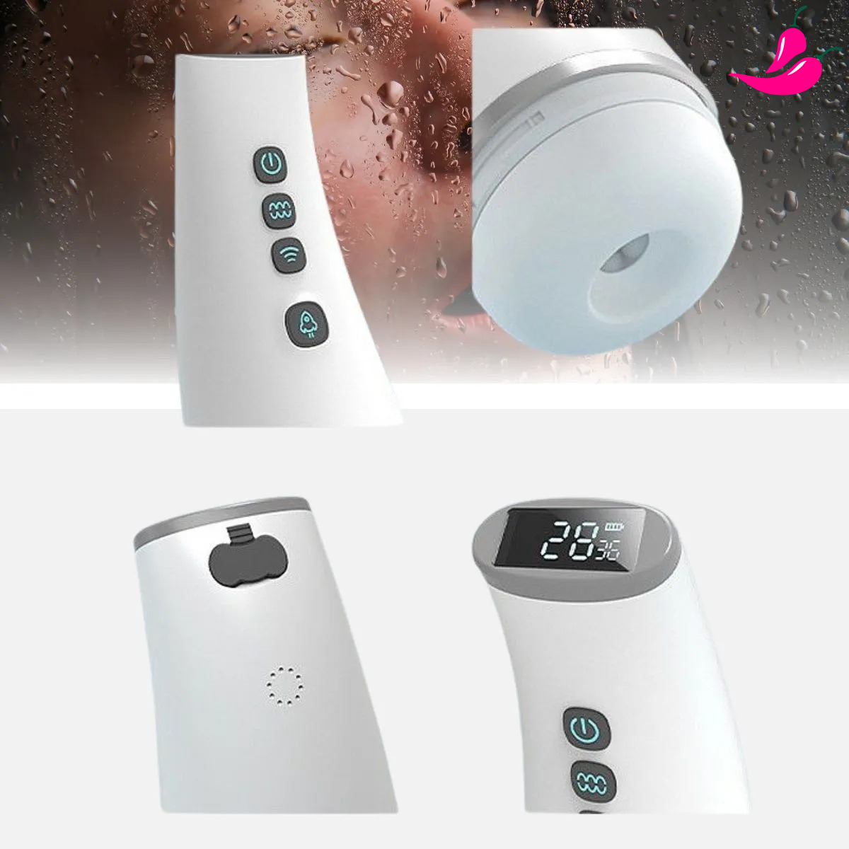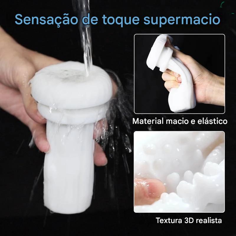 Masturbador masculino com formato de lanterna, possui 10 modos de vibração e 7 modos de pulsação. Conta com função de aquecimento, voz e modo extra de turbo. O produto é macio ao toque e ergonômico, facilitando o manuseio e a estimulação, proporcionando uma sensação prazerosa durante o uso.