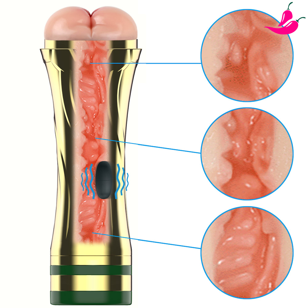 Insira o pênis no canal texturizado e aproveite a estimulação multivelocidade proporcionada pela cápsula vibratória.