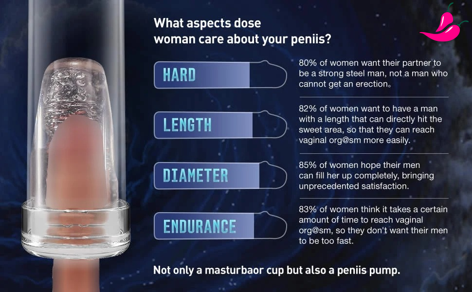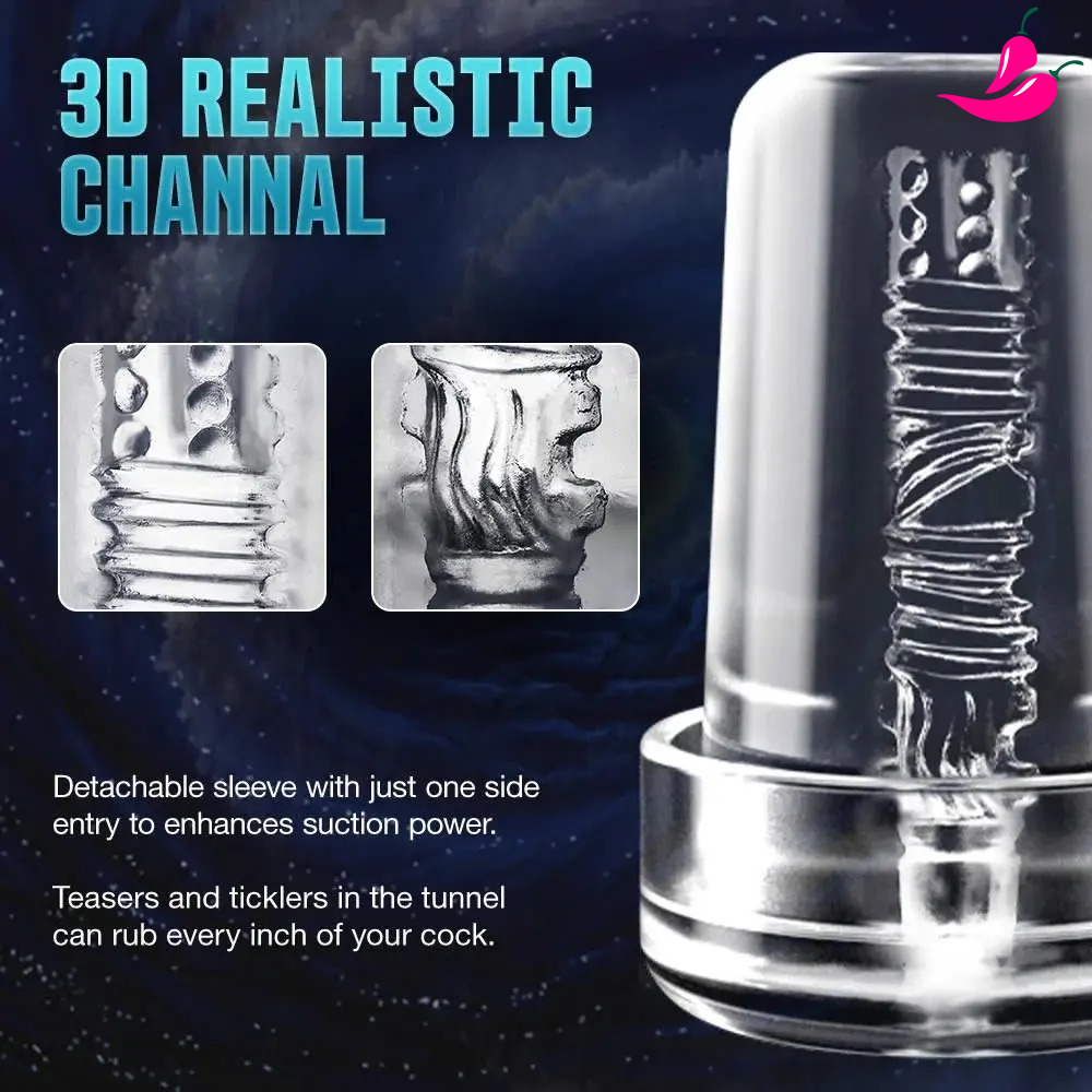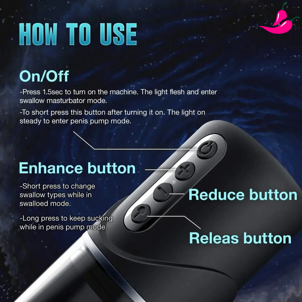 Possui 6 intensidades de sucção, e contem uma luva de silicone que simula uma vagina real, proporcionando altos níveis de prazer. A mudança na sucção de fraco para forte permite que você evidencie a mudança no tamanho do pênis. Essa sucção é mais intensa do que os produtos convencionais e levará seu pênis para o próximo nível!
