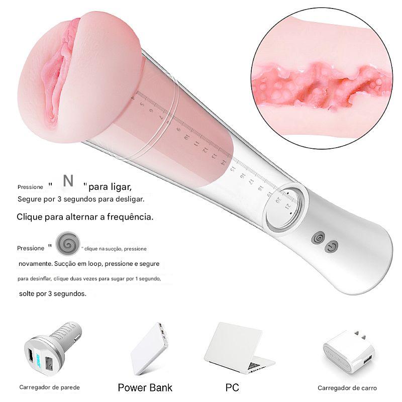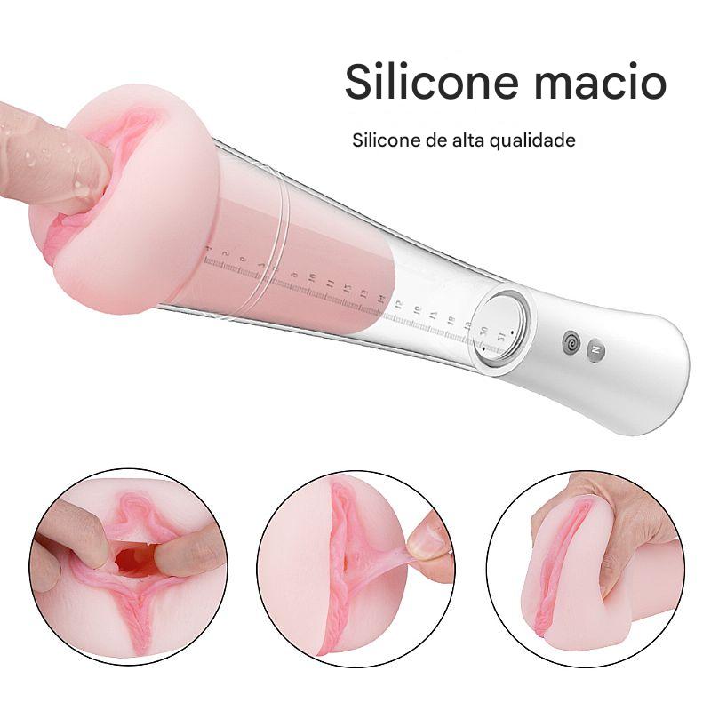 Modo de Uso: Encaixe o anel de silicone na base do tubo. Insira o pênis e pressione o tubo firmemente contra a virilha para garantir a vedação. Ative a função de sucção elétrica através do painel de controle. Recomendação: Utilize 10 minutos diários com o auxílio de lubrificante. Se sentir qualquer desconforto, interrompa o uso e retome no dia seguinte.