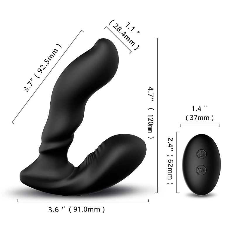 Ação Dupla (Ponto P + Períneo): O design anatômico foca na próstata internamente, enquanto a base vibratória massageia o períneo externamente.