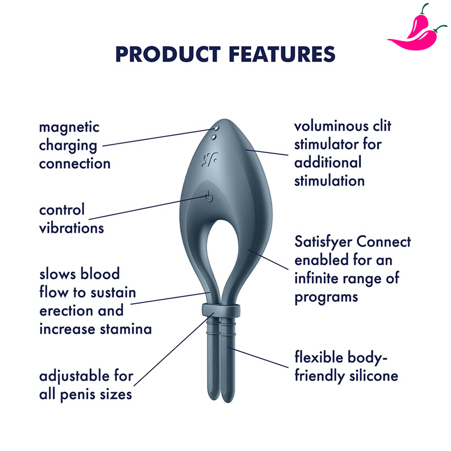 O Satisfyer Bullseye, de tamanho ajustável e feito em silicone, garante prazer duradouro durante o ato sexual, graças ao efeito de congestionamento do sangue. As poderosas vibrações do estimulador clitoriano cônico também podem ser controladas através do aplicativo gratuito Satisfyer Connect.