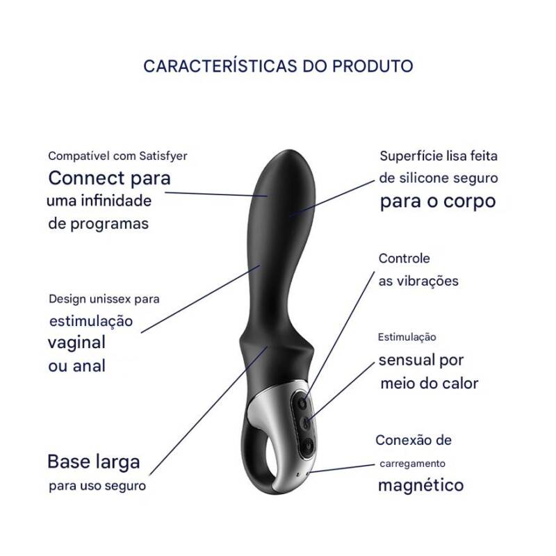 O vibrador também pode ser controlado pelo aplicativo gratuito Satisfyer Connect, disponível para iOS e Android, que oferece recursos como controle remoto, vibrações sincronizadas com música e criador personalizado de vibrações. As possibilidades são infinitas — há muito o que explorar!