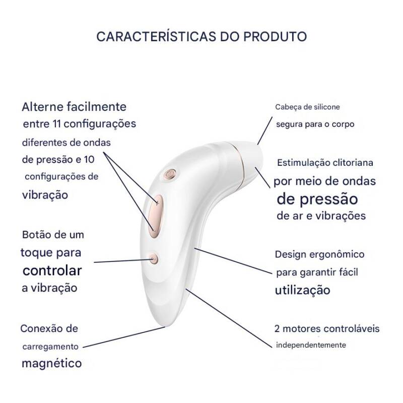 Oferece 11 intensidades de ondas de pressão e 10 programas diferentes de vibração para proporcionar o máximo prazer