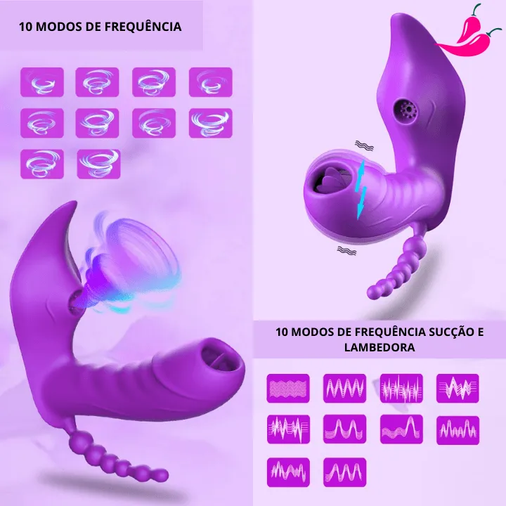 10 modos de vibração, sucção e lambidas – Motor Duplo