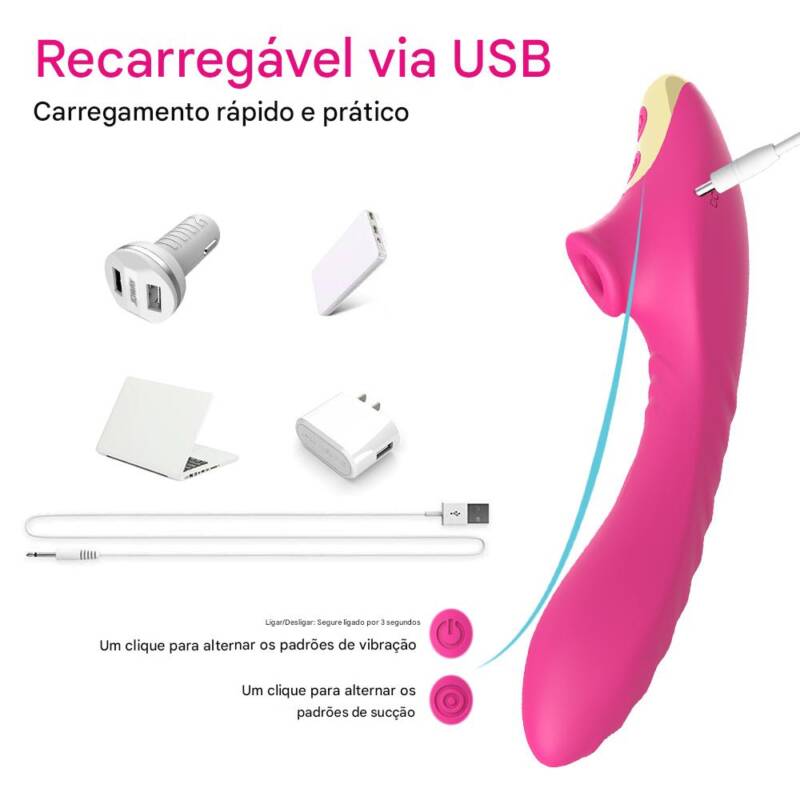 Possui 10 modos de vibração e 10 modos de pulsação, permitindo personalizar completamente a intensidade e o ritmo das sensações. Produto recarregável e acompanha cabo USB.